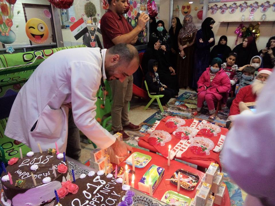 バグダッドから、あけましておめでとう!1月1日、バグダッドの正月休みは12月31日と1月1日のみ。アブサイードは、休みを返上して、バグダッドのセントラル子ども病院でがんの子ども達にパーティを行いました。