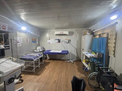 今回のキャンプ訪問で、支援しているクリニックや分娩室の見学や薬品棚の確認、利用者人数や不足している薬品の聞き取りなどを行いました。