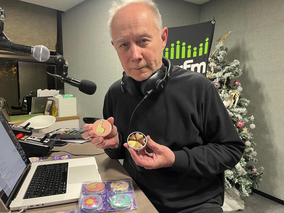 バラカンさんのラジオ番組「Barakan Beat 」でチョコ募金をご紹介くださいました。なんと!チョコ缶のセットたちがリスナーの皆さんへのプレゼントに🎁