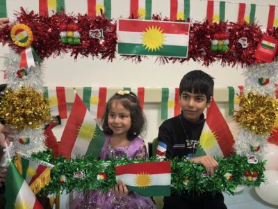 本日12月17日はイラク、クルディスタン地域においてクルディスタンフラッグデーとされている日です。街のあちこちにクルドの旗が掲げられ、クルドの民族衣装を着た人たちが今日という日をお祝いをしました。国を持たないクルドの人々にとって、とても大切な日だそうです。