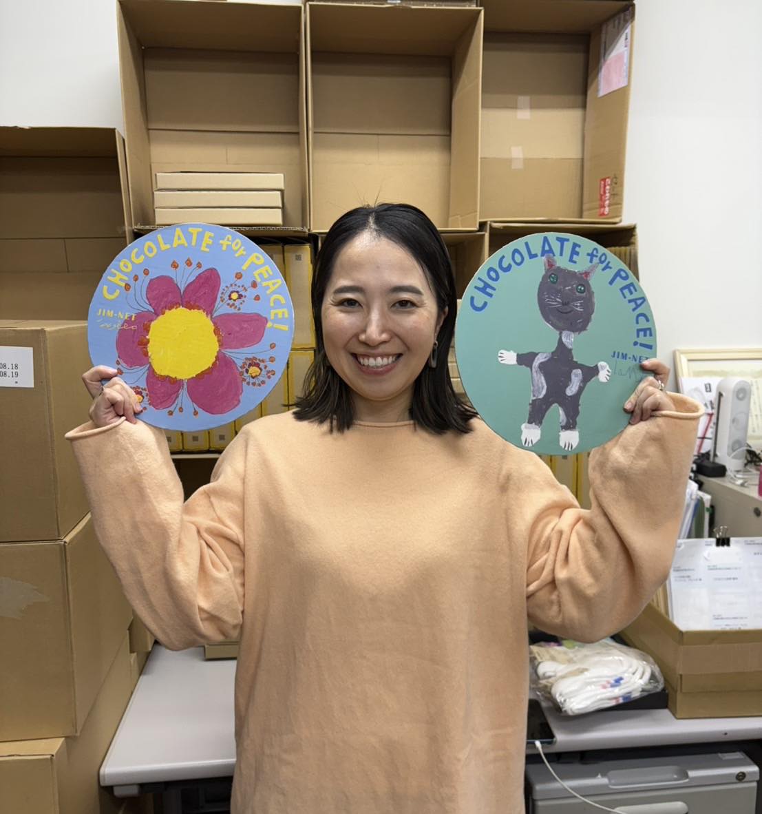 元スタッフが陣中見舞いに駆けつけてくれました~。毎年、チョコ募金の期間中にお仕事の合間に事務所に寄ってスタッフたちを笑顔で癒やしてくださる碧さん🥰「JIM-NET 便り」やお手紙を丁寧に読んでくださるので、いつも励まされています🙏あ〜、疲れが吹っ飛びます!