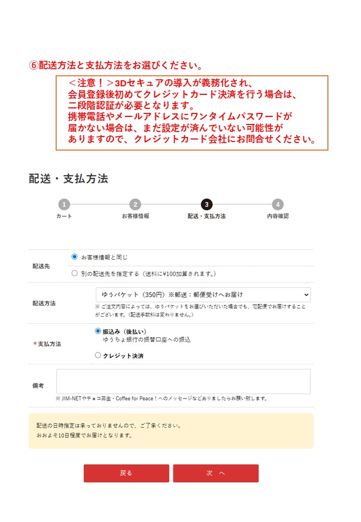 3Dセキュアの導入が義務化され、会員登録後初めてクレジットカード決済を行う場合は、二段階認証が必要となります。